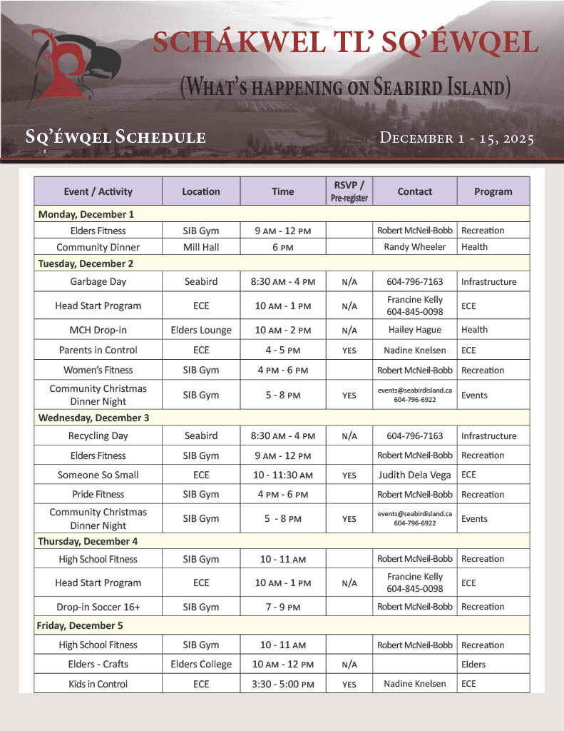 We have also launched the Sq’éwqel Sqwélqwel Pípé (Seabird Island newspaper)! Through this monthly source of community information and entertainment, you can expect program updates, fact-based articles, editorial insights, practical tips, and entertaining sections. A newspaper that informs as well as engages, and ultimately enriches the lives of our Community Members. As we embark on this journey together, our goal is to build stronger relationships within our community.